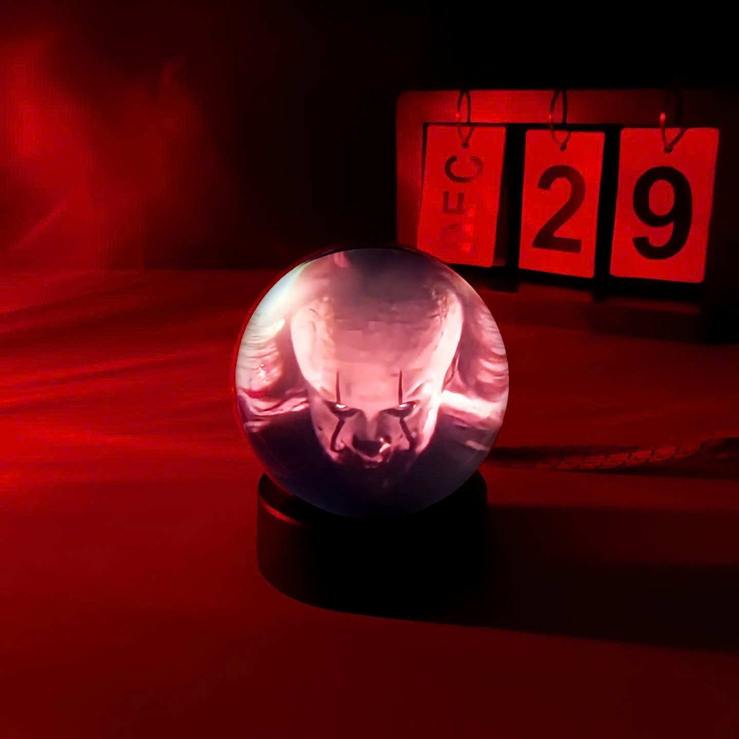 A crystal ball with an eerie glow that nails horror decor clean, iconic, and impossible to forget.